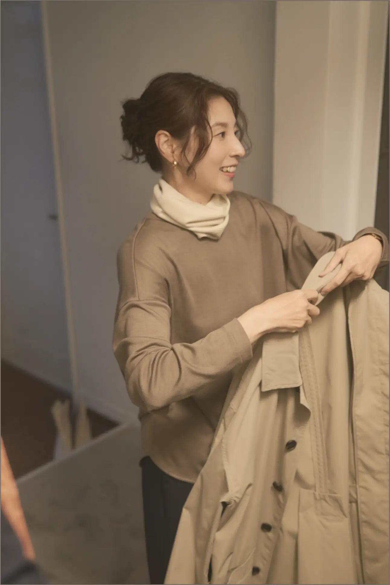 ストレッチ感のある生地を生かし、気軽にかぶるだけで、首をやさしく温めることができるネックウォーマー。